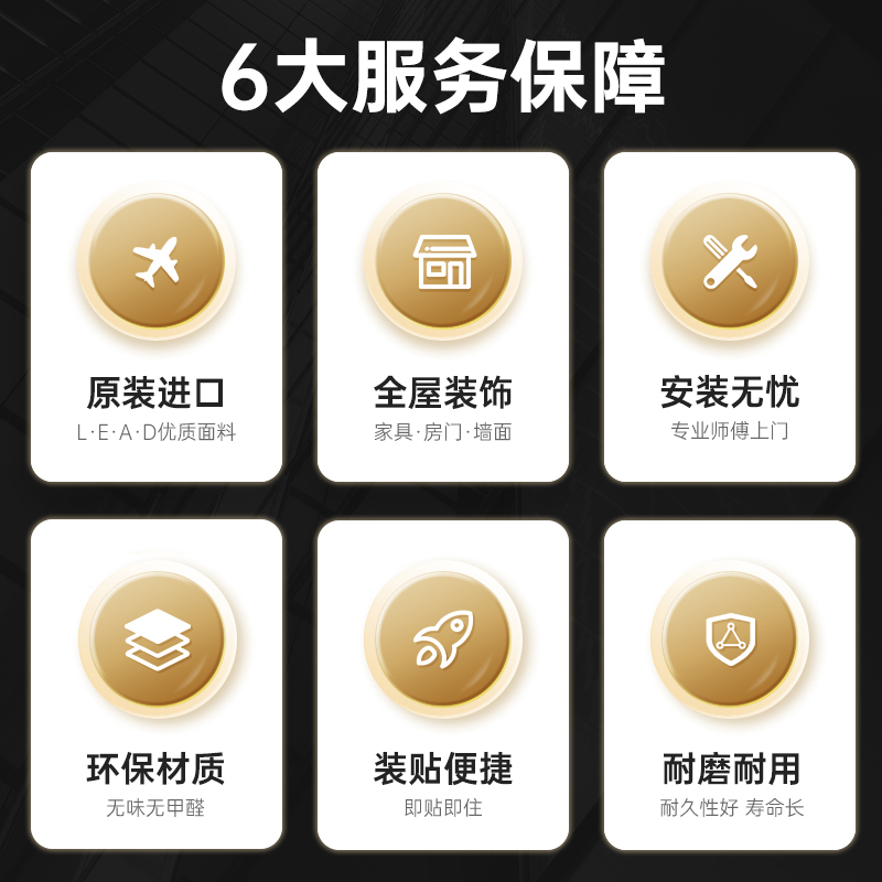 1.原裝進(jìn)口高端材料,安全環(huán)保,質(zhì)感細(xì)膩。2.打破尋常裝飾物料規(guī)范,從機(jī)器線上覆膜到手工線下裝貼。3.全國2100+城市,專業(yè)師傅上門裝貼。4.300款花色任選,輕松駕馭主流裝修風(fēng)格。5.白天貼,晚上住,沒有噪音,沒有異味。6.不沾指紋,耐磨耐刮,耐久性好,壽命長。